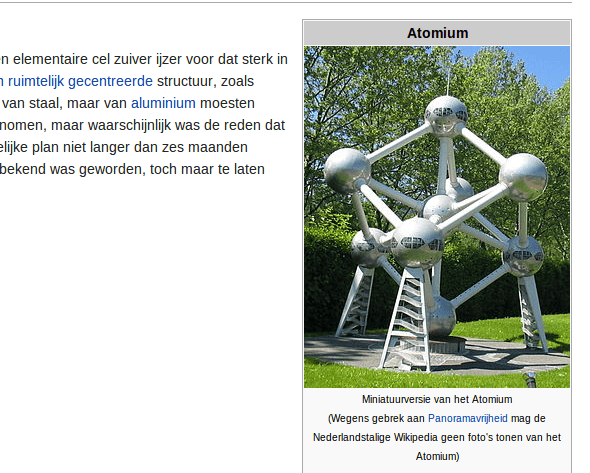 So you have created a nice picture of a panorama in Belgium? Think twice before you share it. Copyright legislation in Belgium doesn’t allow you to share the picture: there is no freedom of panorama. This is why amongst others, if you look at the wikipedia page of the atomium, you will see a picture of the miniature version, not of the real thing.