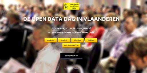 Elk jaar organiseert de Vlaamse overheid de “Open Data Dag in Vlaanderen”. Meer dan 500 deelnemers uit binnen- en buitenland hebben de eerste en tweede editie van dit Open Data evenement bijgewoond.