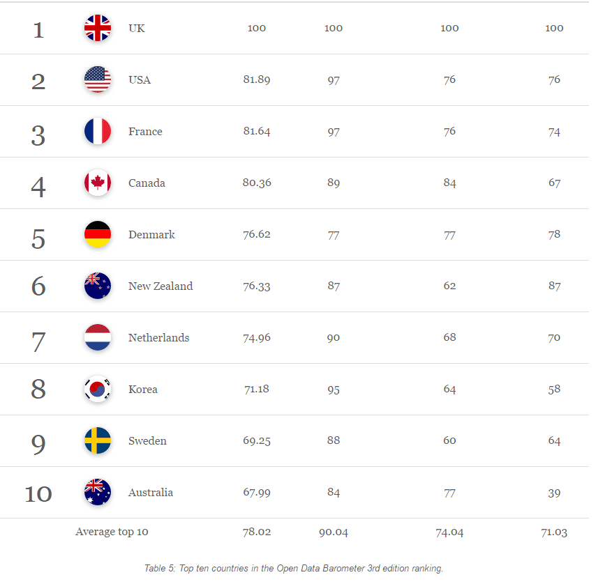 You might get jealous of France – and for a good reason. This country can provide you, not only cheese and wine, but a sheer amount of open data too, making it number 3 right next to the USA in the world ranking. Netherlands, on the contrary, lost one position in the ranking, descending to number 7. However, if you look at the top 10, you will find only 5 European countries up there. This might change even more: the new generation of open data adopters is going to challenge traditional stalwarts such as USA and UK. ‘The need to robust the data to drive democracy and development’ which is clear – is one of the key findings of the ODB.